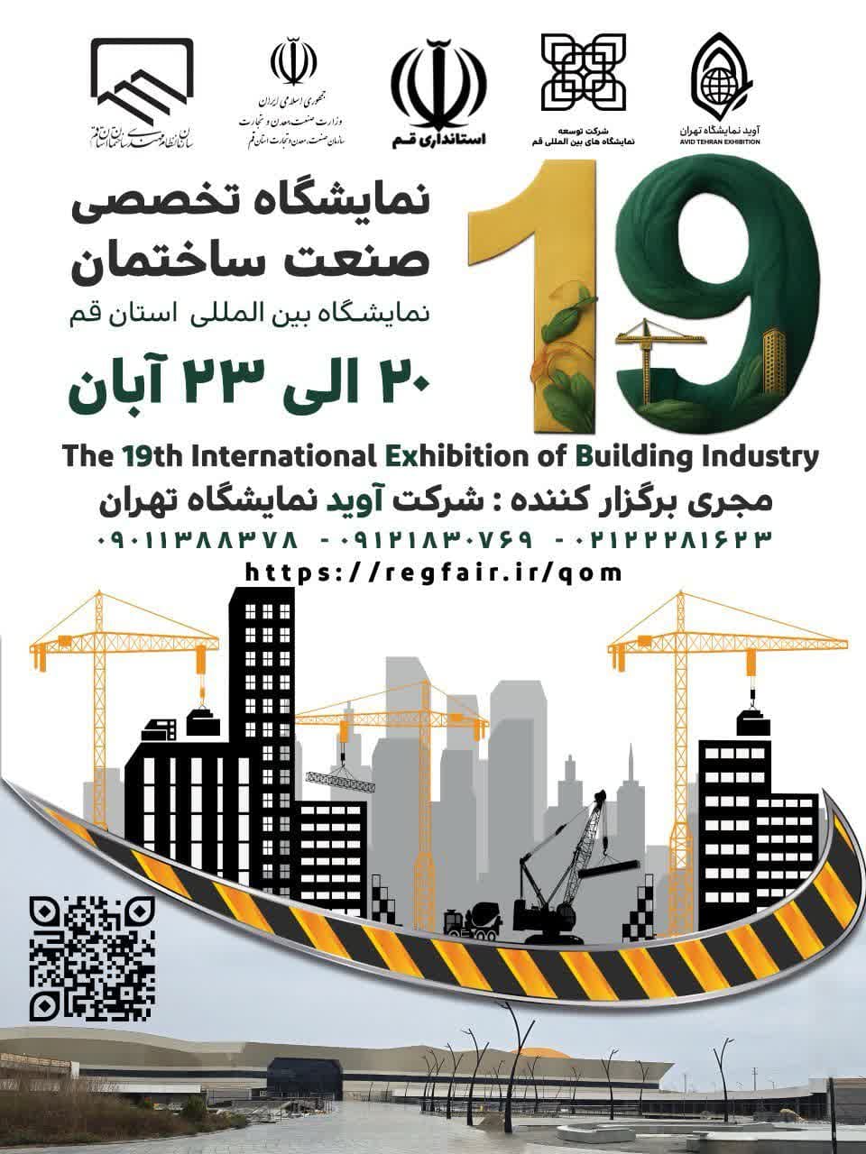 نوزدهمین نمایشگاه تخصصی صنعت ساختمان در استان قم از تاریخ 20 لغایت 23 آبان ماه سال جاری با حضور برندهای برتر استانی و کشوری در غالب گروه‌های مختلف کالایی از جمله تولید کنندگان مصالح و مواد پایه ساختمان، سیستم های گرمایش و سرمایش، ماشین آلات ساختمانی، معماری و دکوراسیون، کاشی و ... برگزار می‌شود.